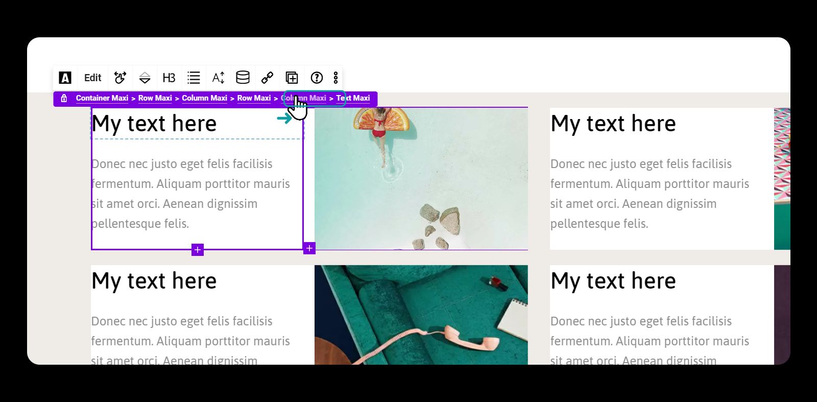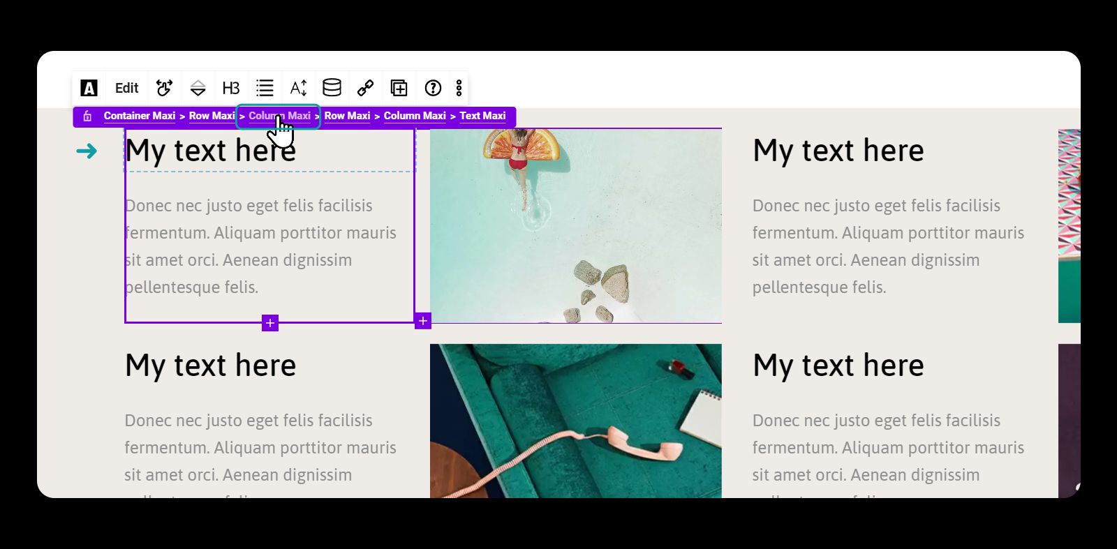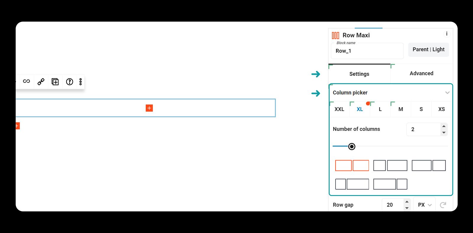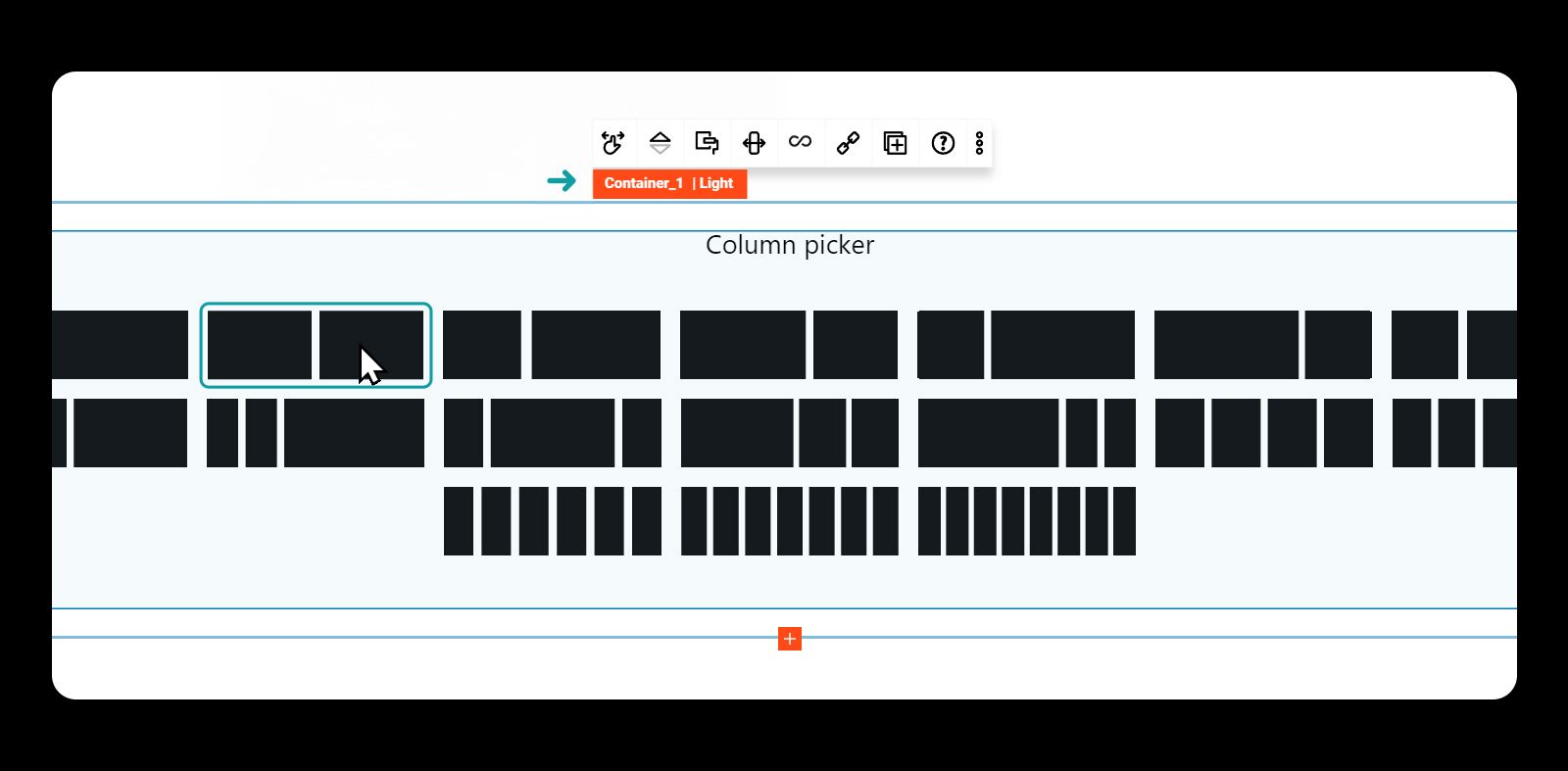 **To add a container, simply click the "Add Block" button and select the Container Maxi block. You'll then be prompted to choose the column layout you want for the row.