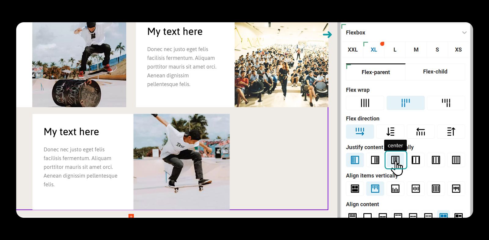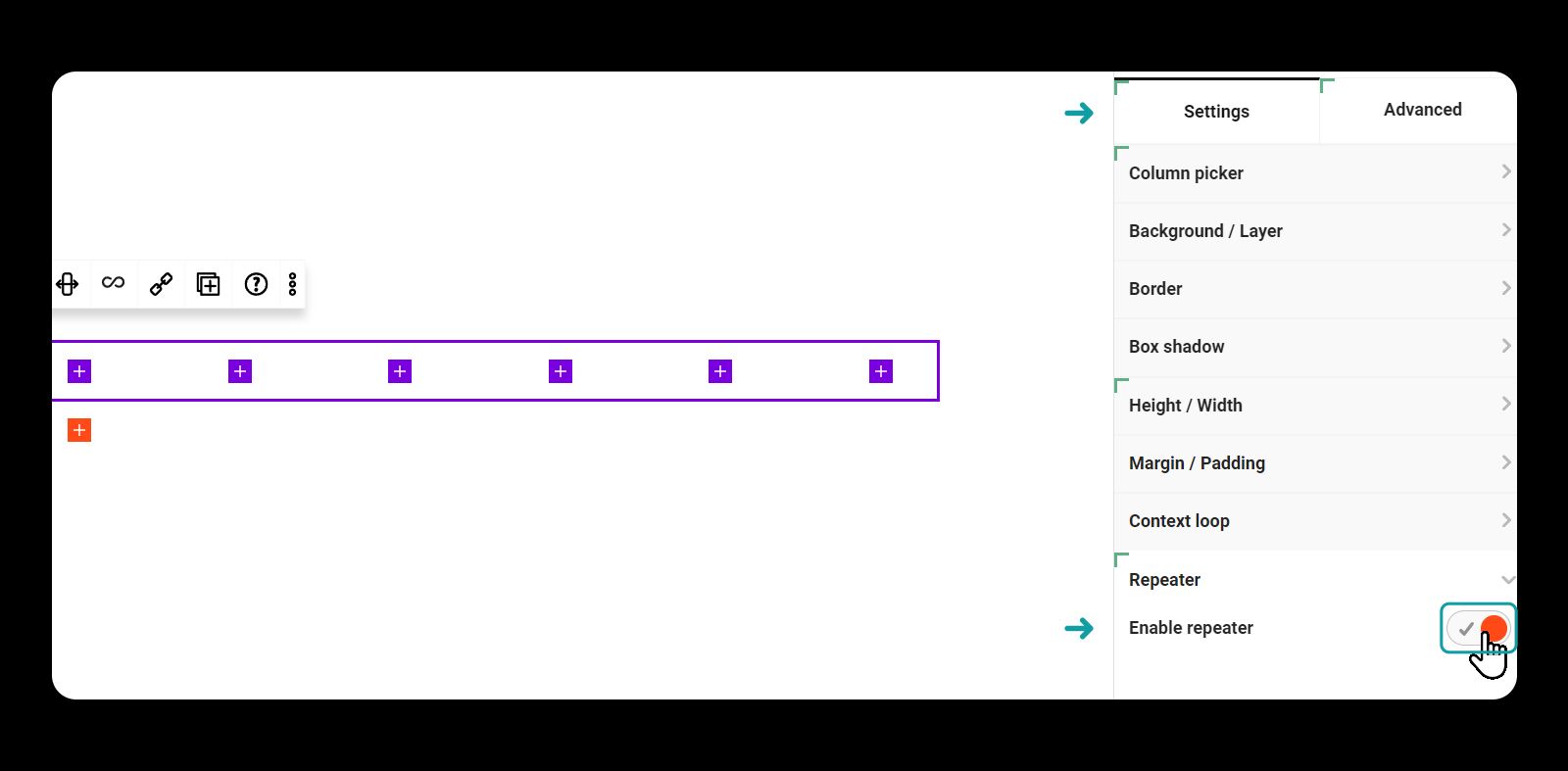 Toggle >> Advanced tab >> Flexbox