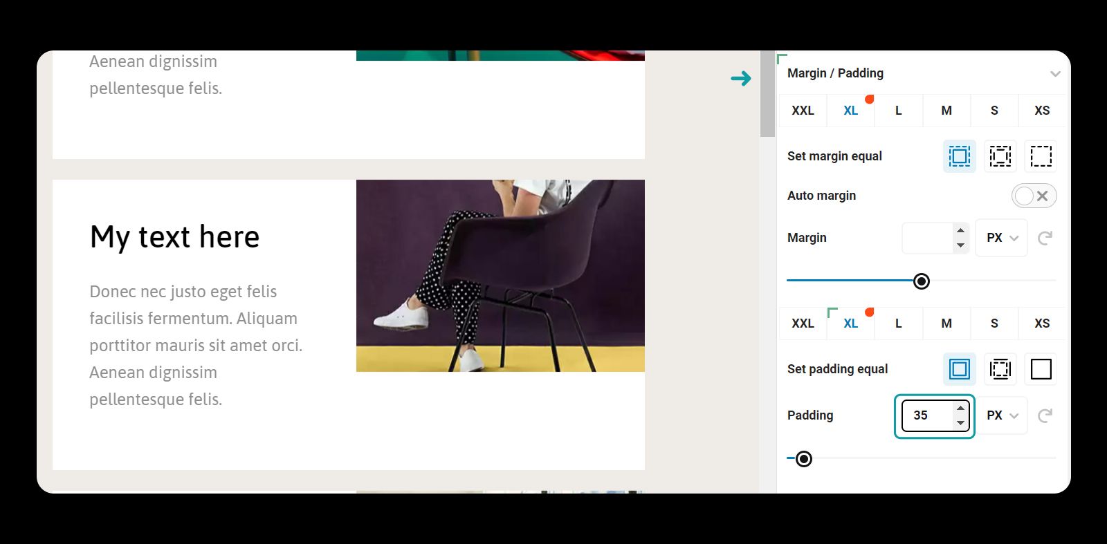 Set the padding to 35px