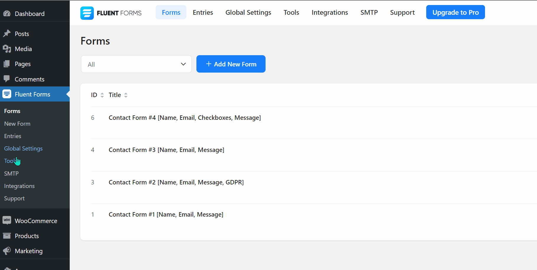 In your WordPress dashboard, go to Fluent Forms > Import/Export.