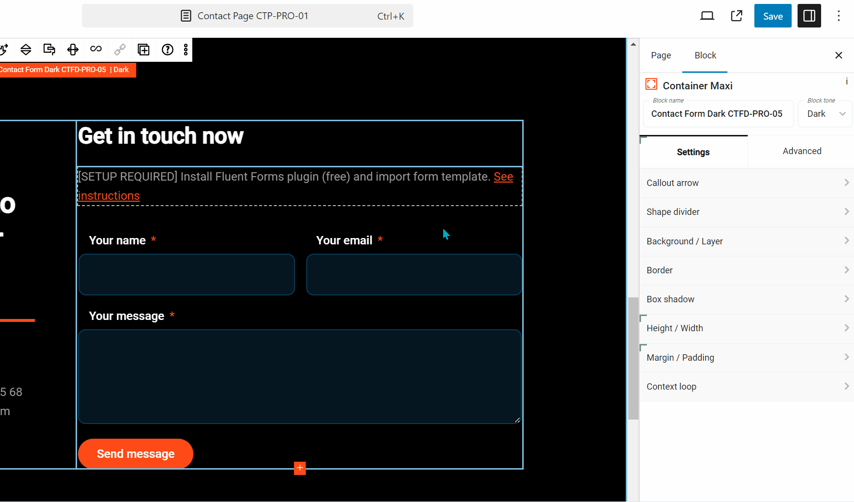 Add a contact form to your website using MaxiBlocks and Fluent Forms