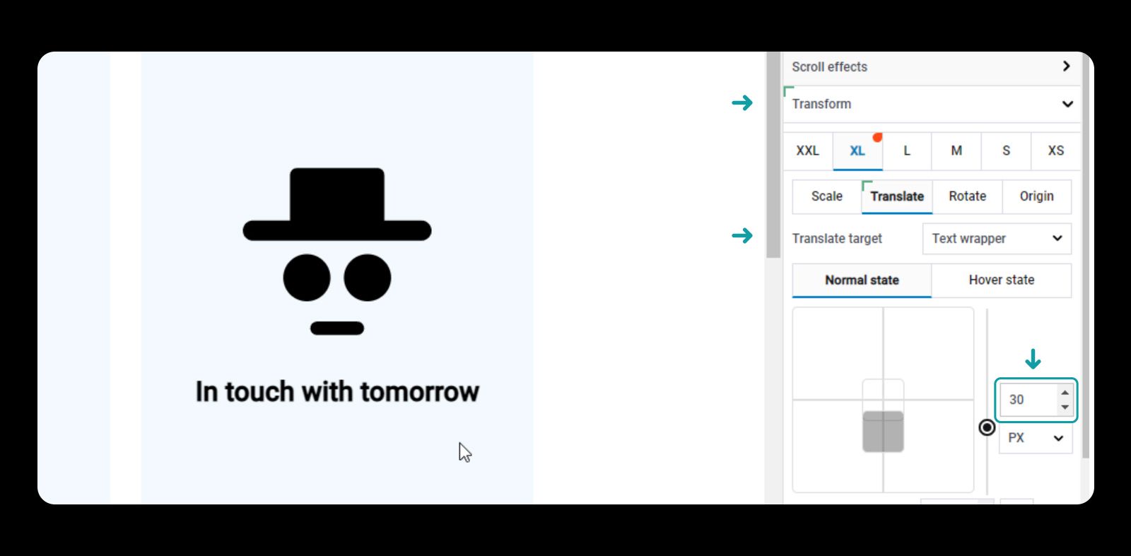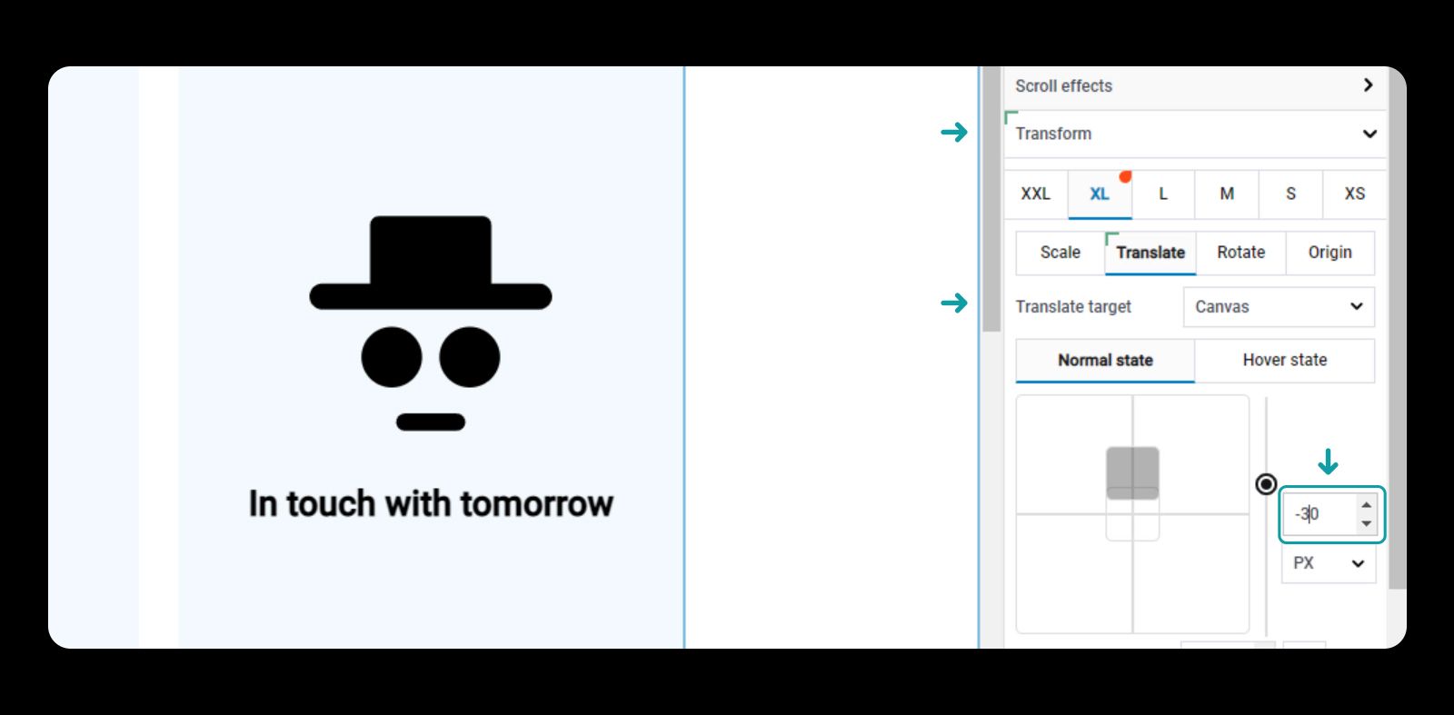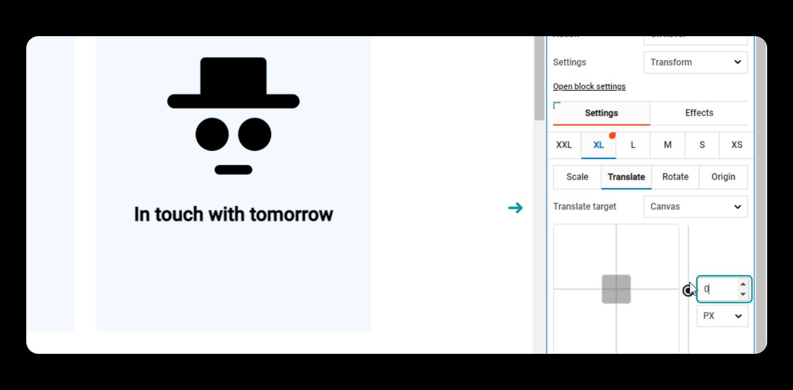 Set the translate setting to 0px. In this case, the element will animate back into position