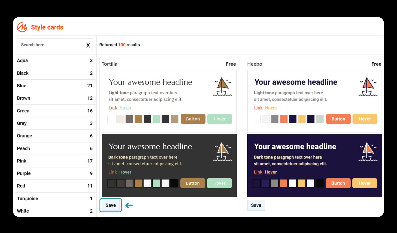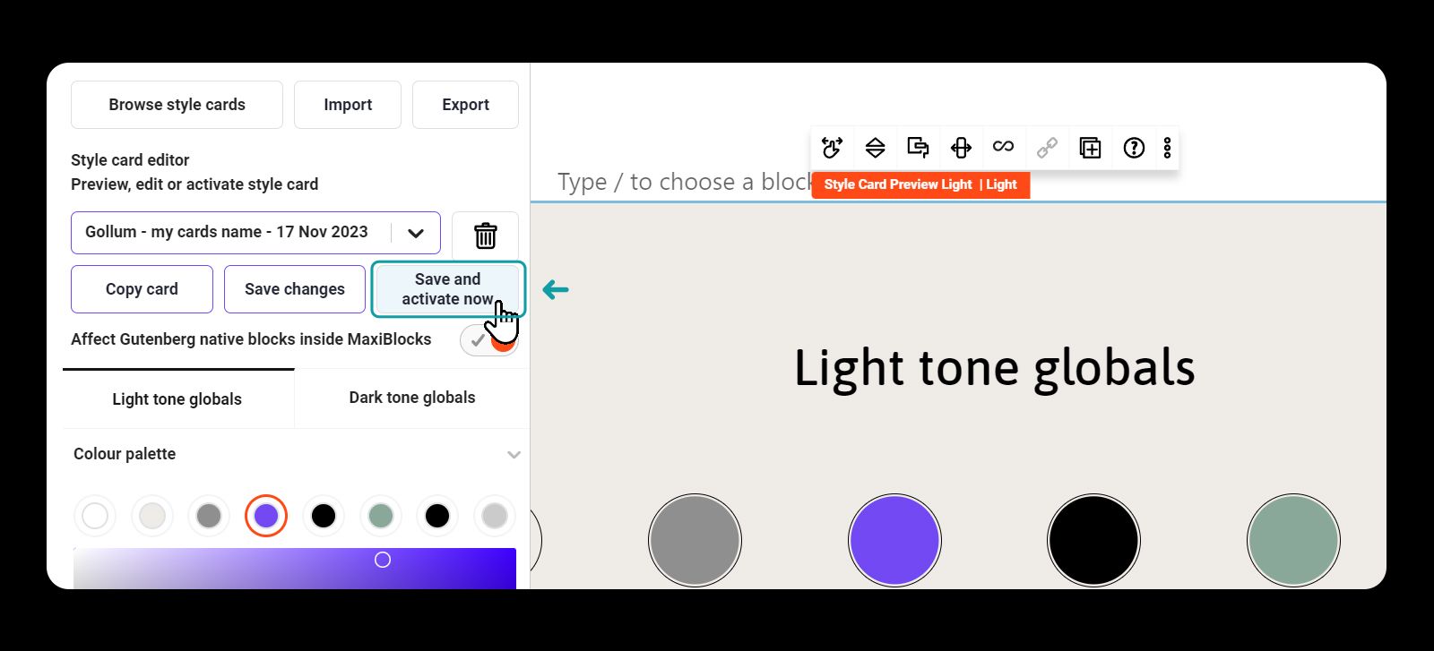 There are many pre-made style cards available in Maxi Blocks with different colour palettes and styles to choose from.