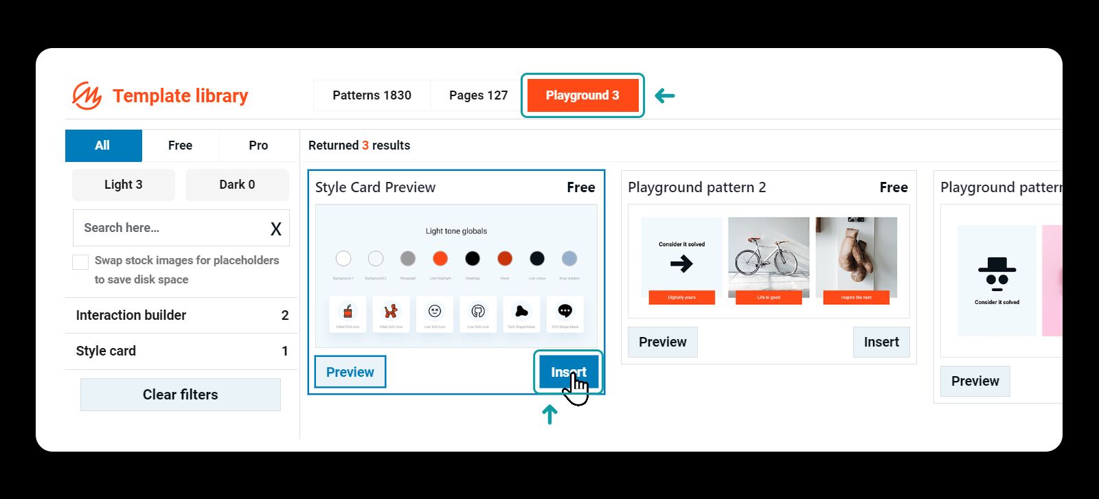- Use the Style Card Preview as a starting point. Load it from the template library > playground