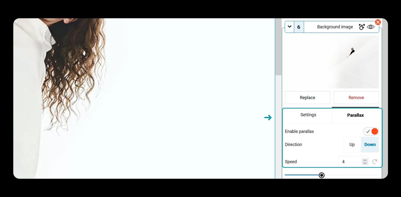 If desired, you can adjust the direction and speed of the parallax effect as well.