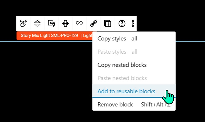 Click on the reusable block to select it.