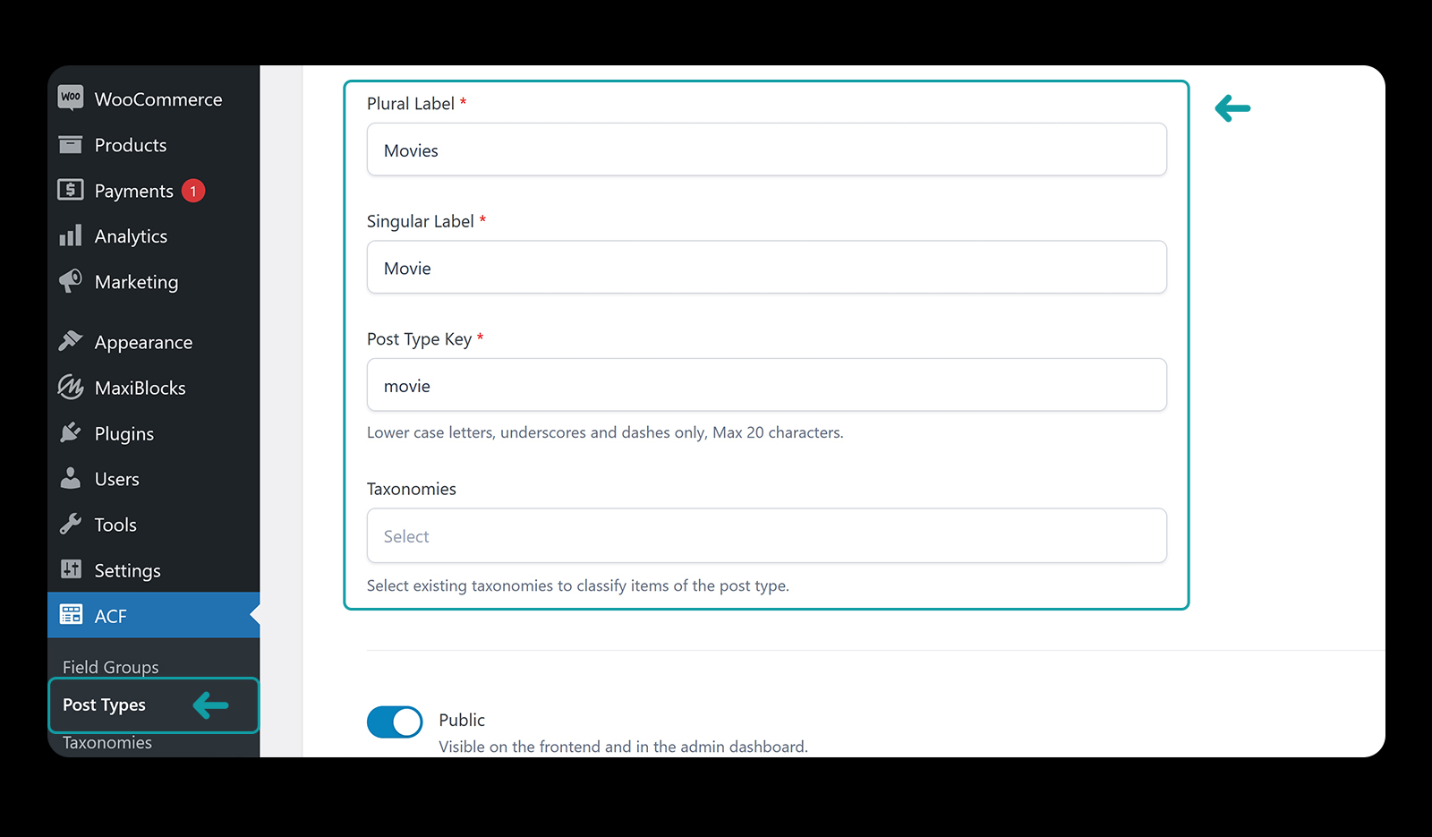 Create your post type now by going to ACF > Post Types.