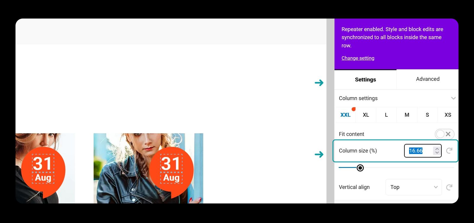 Enable repeater. This will populate the new columns with the content automatically.