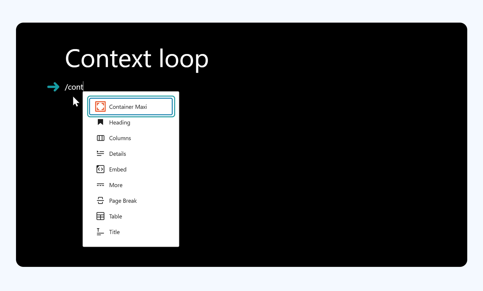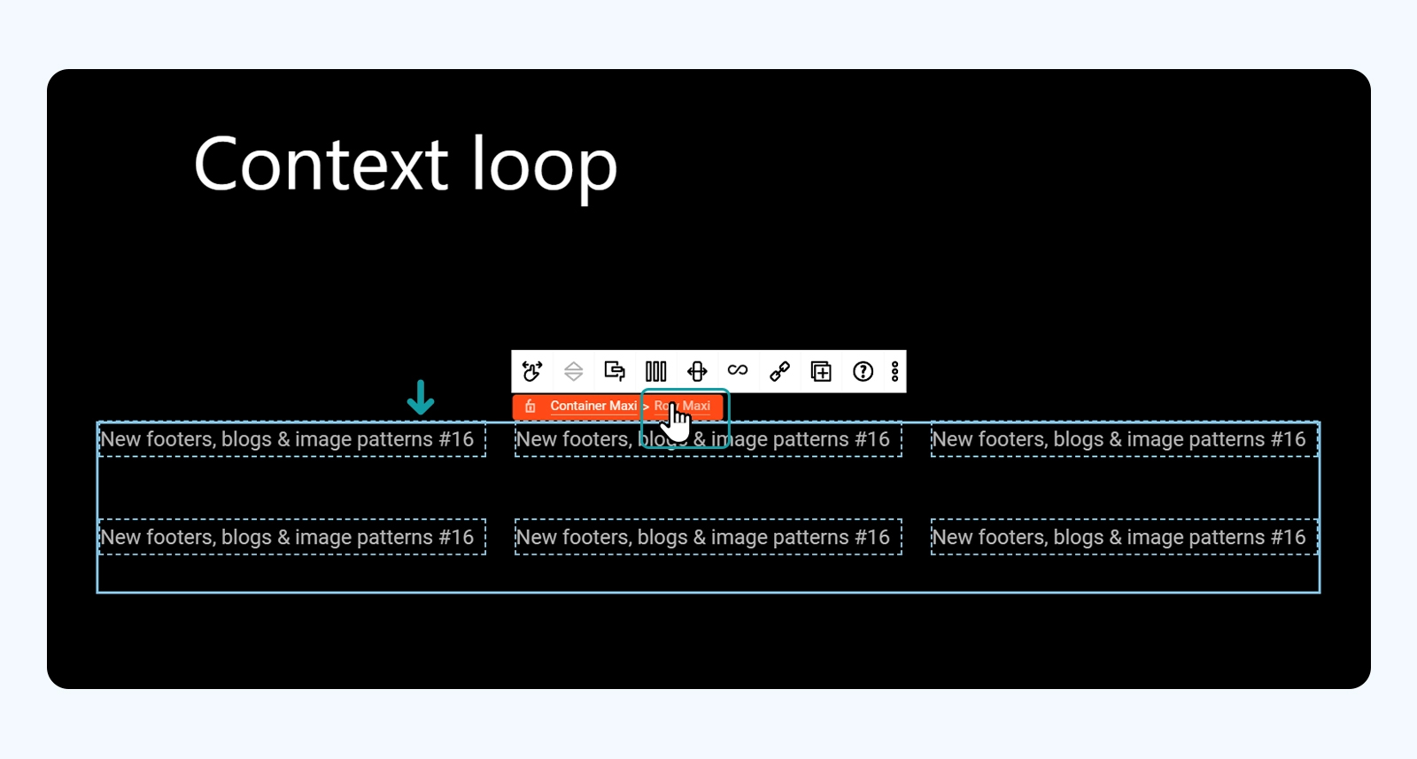 **A loop represents multiple items such as posts or products which can be displayed by a given criteria. Use the Context Loop feature to create a blog or shop index page, or an archive page, for example.