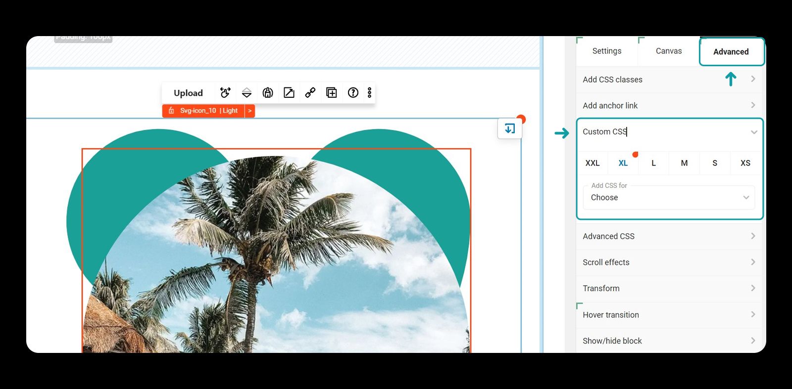 Toggle the advanced tab and select the custom CSS tab
