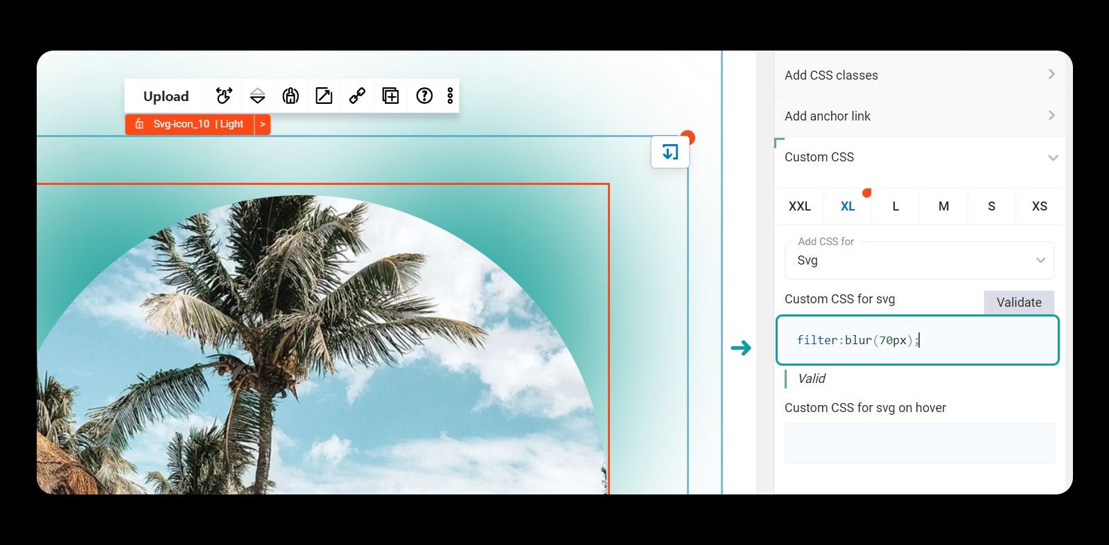 Add the CSS you wish to add (we are adding in filter:blur(70px); to give the svg a blurred look)