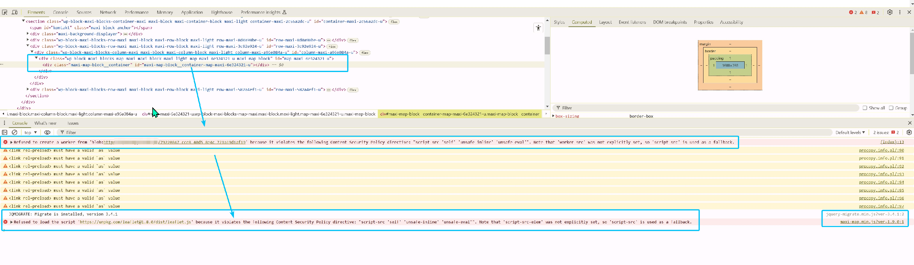 Troubleshooting maps not displaying with MaxiBlocks and content security policy